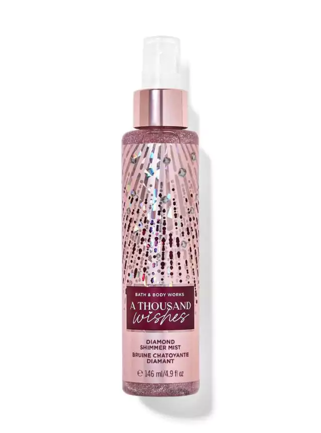 O Body Splash Bath & Body Works A Thousand Wishes oferece uma composição aromática complexa e sedutora. A fórmula combina notas refinadas de Prosecco Rosa, Marmelo Cintilante, Peônias de Cristal, Âmbar Dourado e Creme Amaretto, criando um aroma doce e elegante que acaricia a pele.