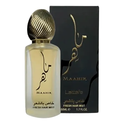 Descubra a essência única do Perfume Lattafa - Maahir Hair Mist 50ml, uma experiência olfativa que transforma a rotina de cuidados com os cabelos.